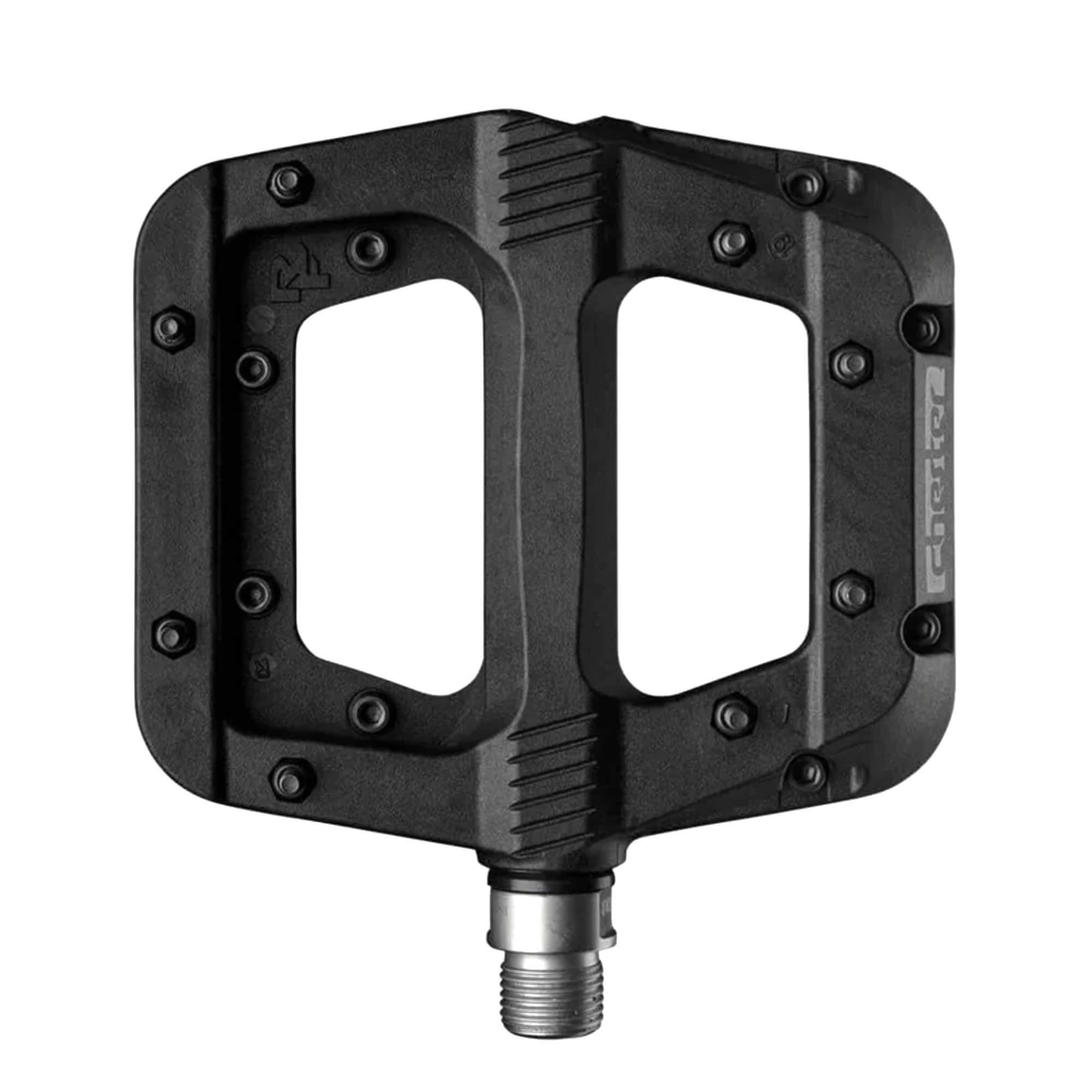 A new edition to the Race Face pedal line-up: the Chester Pedal. The tough and burly nylon composite body provides a large platform with the same grip as traditional alloy pedals via the bottom loading 8 hex traction pins per side. Thin and lightweight is the name of the game with the Chester, featuring a cro-mo axle that is fully sealed and a 100% serviceable bearing and bushing system. This pedal offers great performance for a wide range of riders at a price that leaves plenty of cash in your pocket for that round of bevies at your local watering hole after hammering out a day of hot laps with the crew.